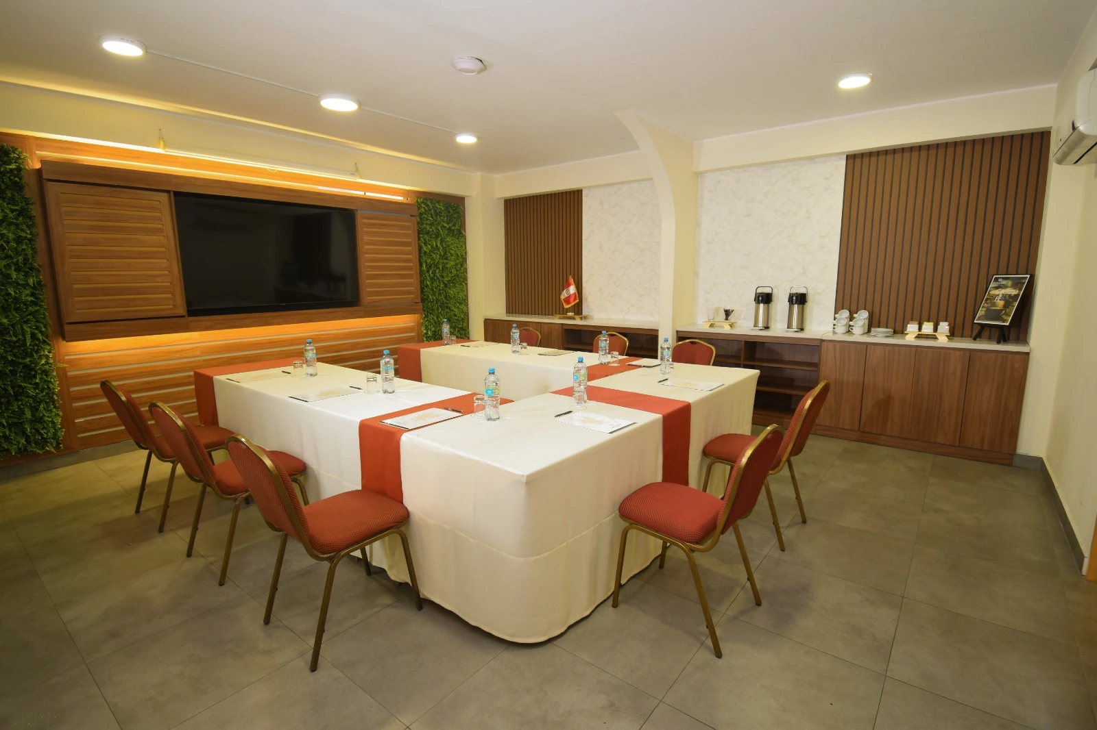 Ambiente privado y funcional, diseñado para reuniones ejecutivas, sesiones estratégicas y presentaciones empresariales en un entorno cómodo y profesional.
